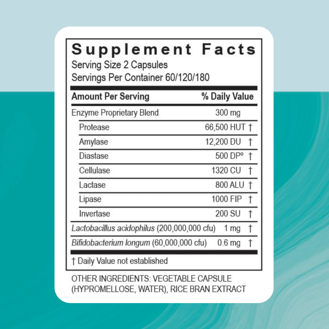 Digestive Enzymes deliver a blend of proteases (e.g. protease, papain, bromelain), amylase, lipase, and other enzymes to support: