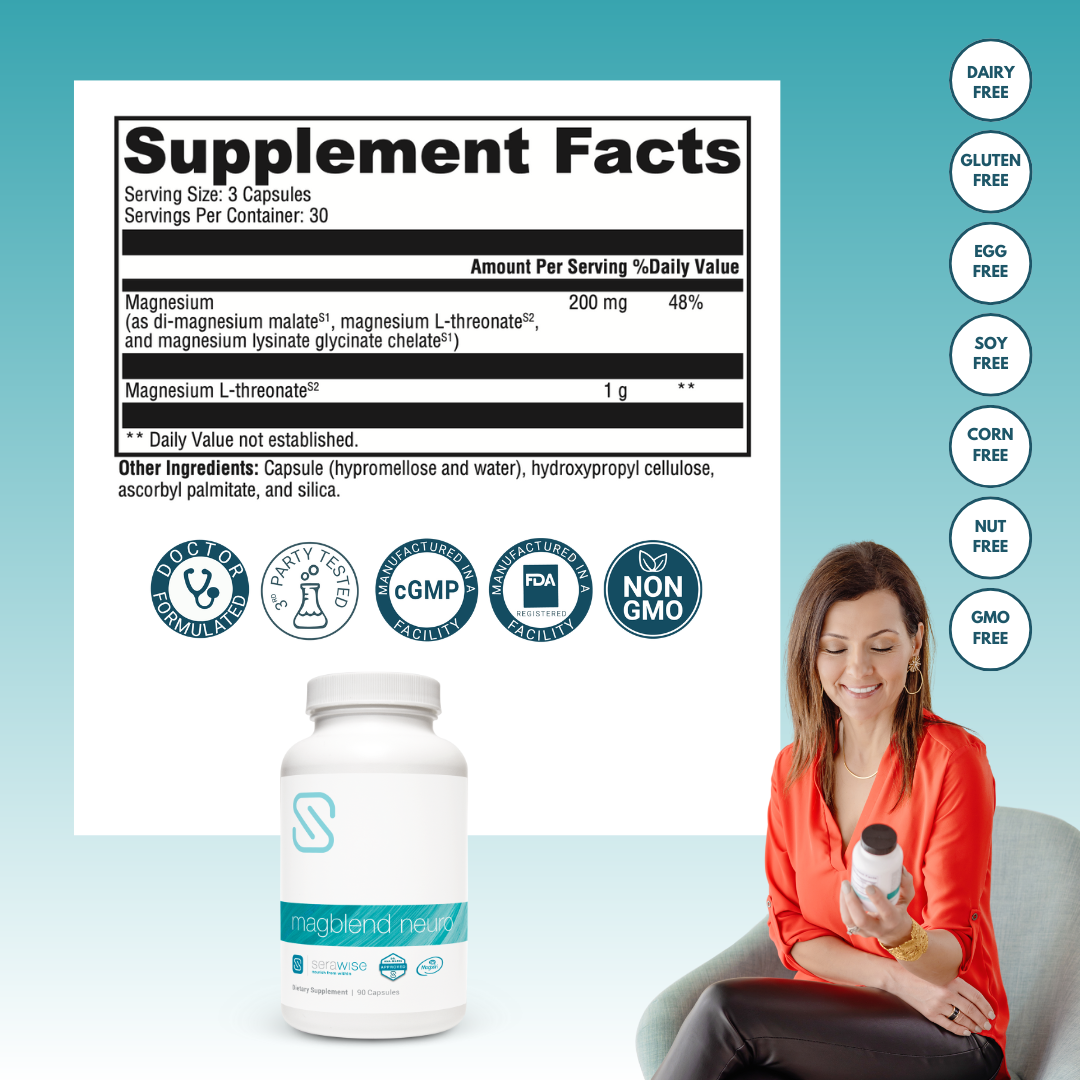 • MagBlend Neuro = whole-body magnesium plus a patented brain-targeted form to support cognition, mood, and sleep from the inside out