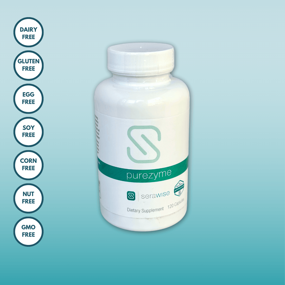 PureZyme is a broad-spectrum blend of plant-based enzymes designed to assist in digesting proteins, fats, carbs, and fiber. It’s ideal for: