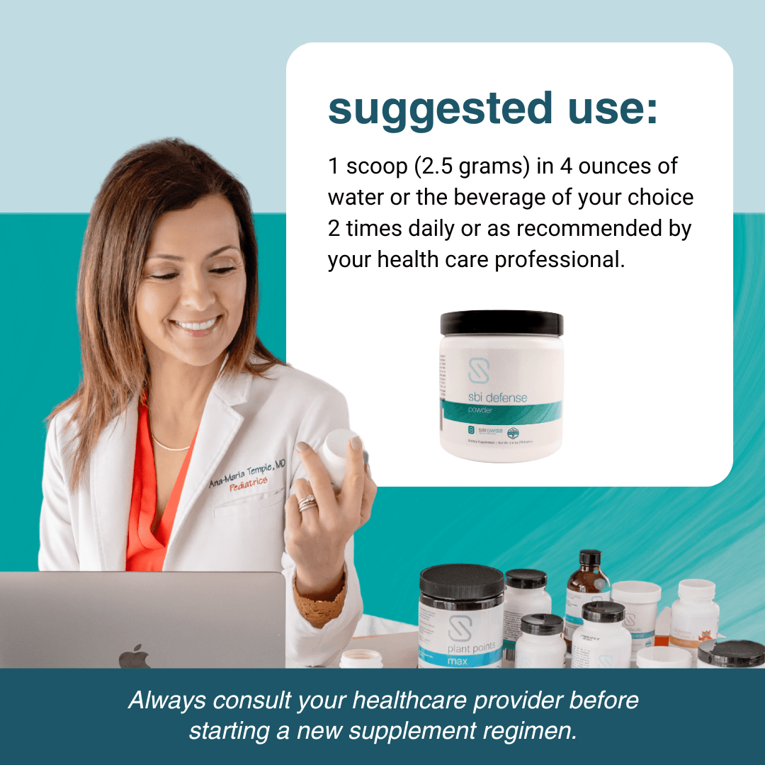 SBI Defense® Powder is Dr. Temple’s go-to for gut healing protocols, formulated to calm inflammation, protect the gut lining, and strengthen your immune response from within.