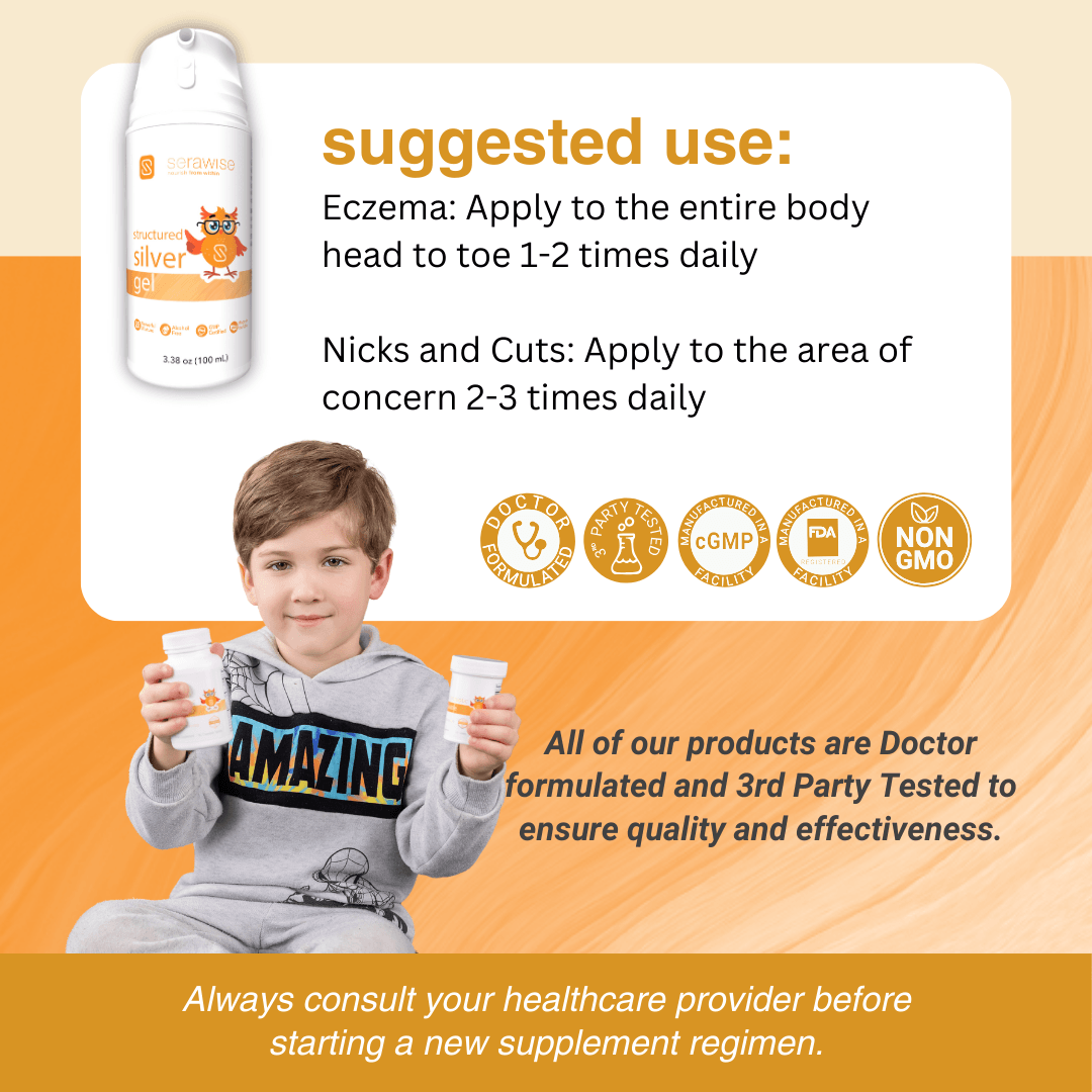 Whether it’s eczema, cuts, rashes, or breakouts—SeraWise™ Silver Gel helps soothe, protect, and heal with the power of ionic silver and calming botanicals. Gentle enough for daily use, strong enough to support skin recovery.