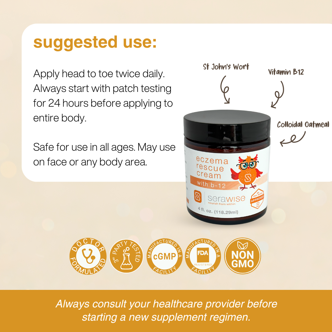 Eczema Rescue Cream - "Apply a generous layer to clean, dry skin 1–2 times daily or as needed.