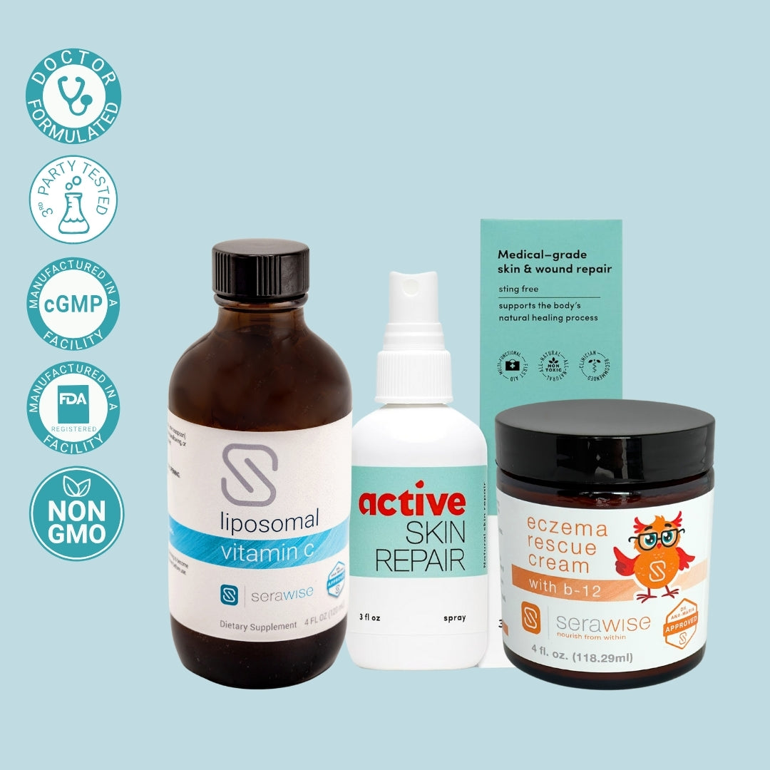 This 3-in-1 bundle is designed to calm irritated skin, nourish the immune system, and support your body’s natural healing processes—inside and out. Whether you're managing flare-ups, battling dryness, or just want to build a healthier skin foundation, this bundle brings together Dr. Ana-Maria’s favorite summer solutions for skin that looks and feels resilient, which is especially helpful during the summer months, when sun exposure, sweat, and outdoor activities can irritate sensitive skin and challenge your immune defenses.