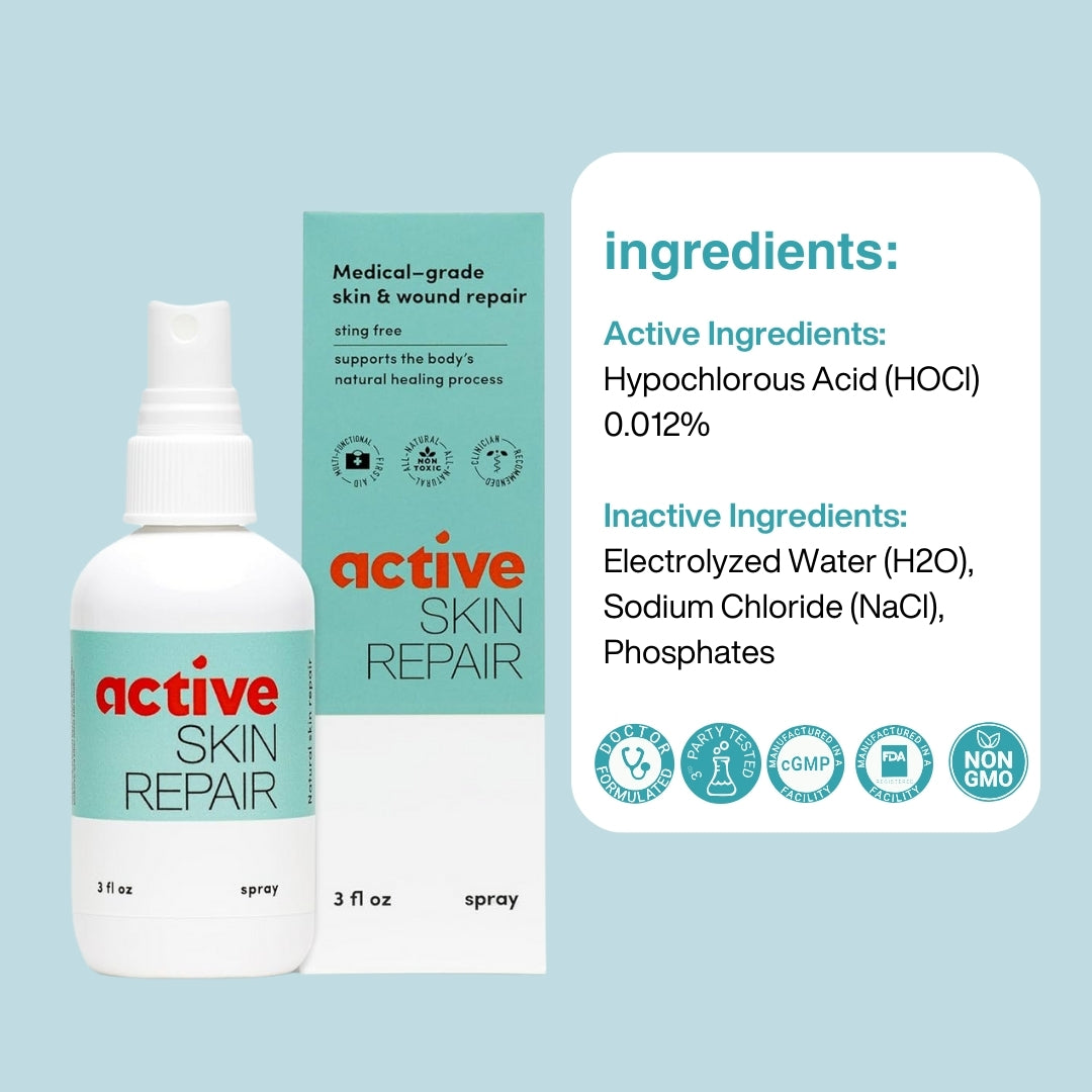 A medical-grade, non-toxic healing spray powered by Hypochlorous Acid (HOCl)—the same molecule your body naturally produces to fight off bacteria and inflammation. Use it for cuts, scrapes, rashes, and eczema flare-ups. Safe for all ages, including infants.